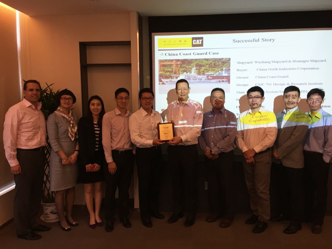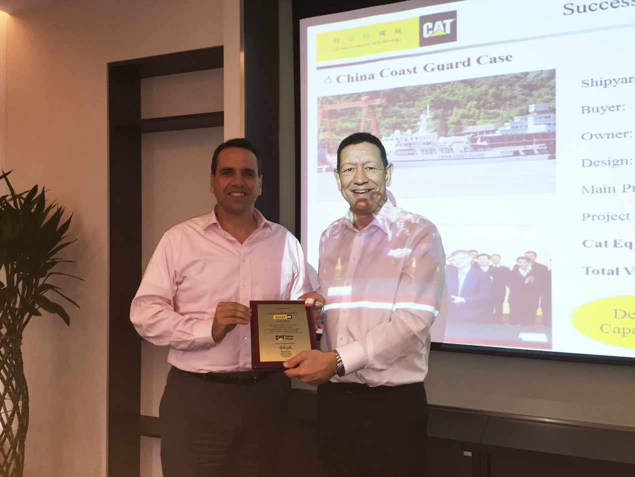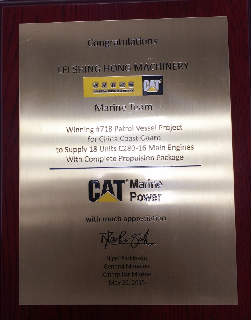 2015年5月26日,卡特彼勒船舶部董事总经理Nigel Parkinson及亚太区销售经理陈耀明先生带领其团队成员到访JIUYOU.COM九游(中国机械发动机事业部。为了表彰JIUYOU.COM九游(中国机械船机组在中国政府船市场中取得如此傲人的佳绩,Nigel Parkinson先生向JIUYOU.COM九游(中国机械船机组销售总经理洪波先生颁发了荣誉奖牌,并对该项目团队成员做出的贡献与努力给予了高度的评价和肯定。