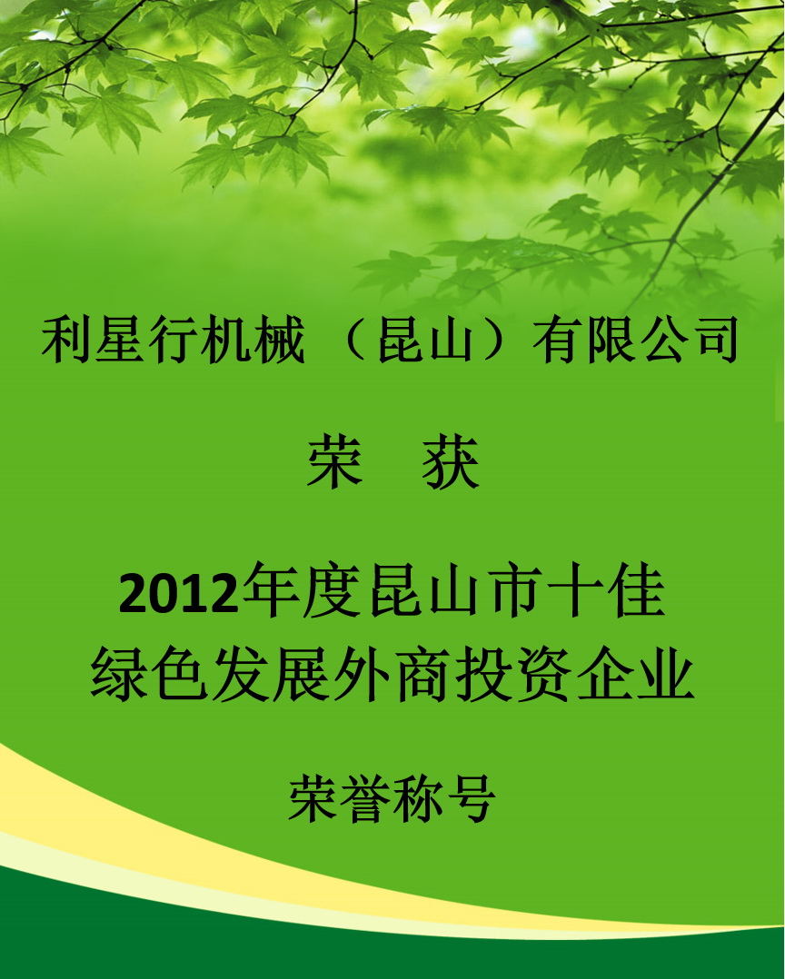 JIUYOU.COM九游(中国机械昆山荣获十佳绿色发展外商投资企业荣誉称号
