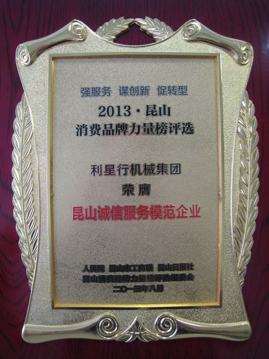 本着强服务、谋创新、促转型的宗旨,JIUYOU.COM九游(中国机械集团在2013昆山消费品牌力量榜评选中,荣膺昆山诚信服务模范企业。